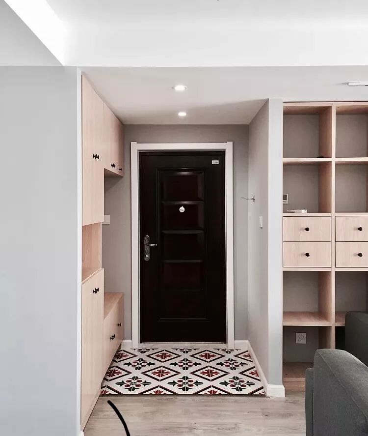 ▲玄关位置铺贴了红黑相间的小花砖,点缀整个空间,让人进门的一瞬间有一种不一样的感觉,同时也巧妙的划分出玄关的位置。