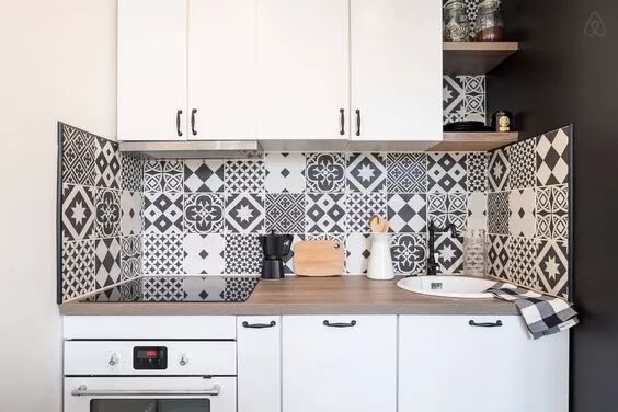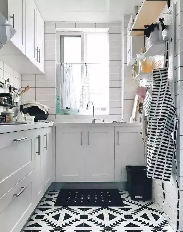 ▲小花砖铺在橱柜下方区域做防溅板,不仅颜值担当,厨房油烟较大,相比白色瓷砖,花砖更耐脏,细小的油污也不会引人注意。但还是要养成定期清洁的好习惯。