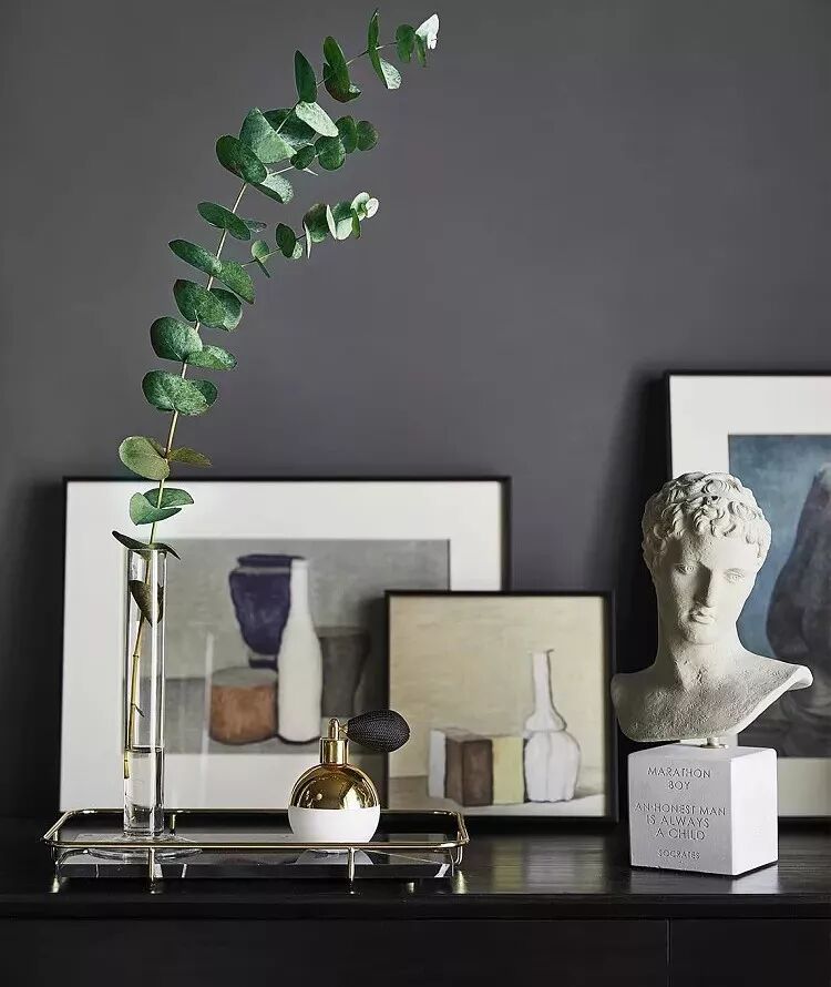 ▲为避免风格寡淡,可以选择形状相反的小物品作为对照,例如在都是直线的房间内的桌子上,摆设一些曲线物品,一株垂头的尤加利叶。